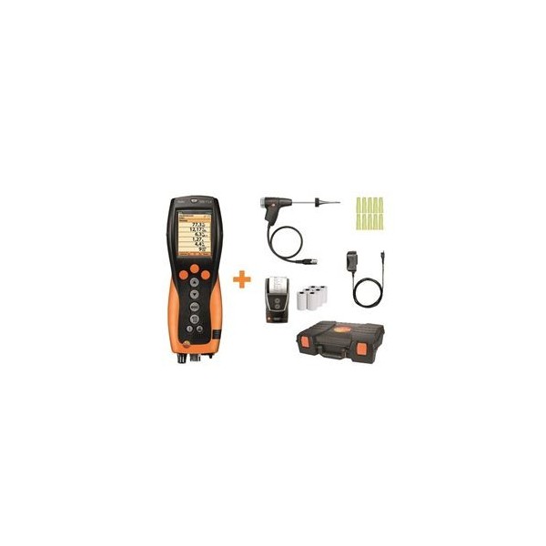 O2 ve CO sensörlü ve Bluetooth'lu testo 330-1 LX baca gazı analizörü, şarj edilebilir batarya ve kalibrasyon protokolü