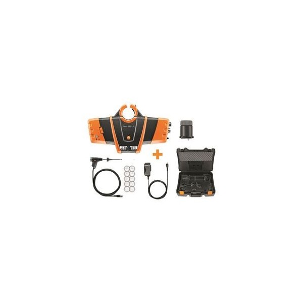 testo 330i LX baca gazı analizörü, 3 delik ve entegre çekiş ve gaz sıfırlama. O2 sensörü ve H2 düzeltmeli CO sensörü, şarj edilebilir batarya ve kalibrasyon protokolü ile birlikte.