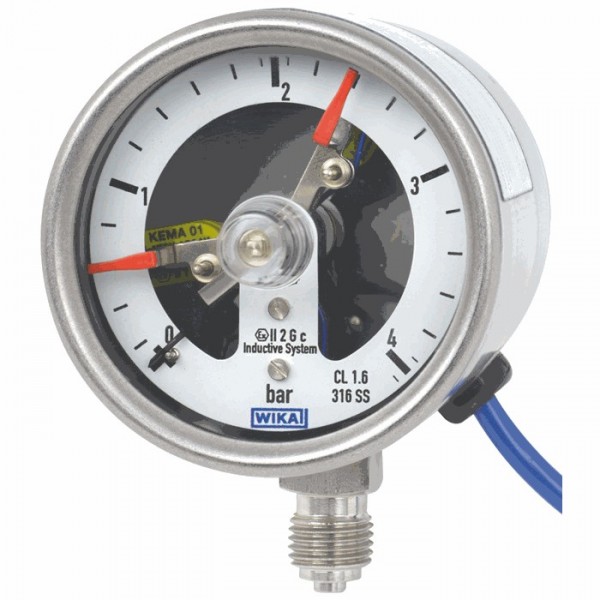 Proses basıncın yerel olarak gösterilmesi gereken ve aynı zamanda devrelerin yapılması veya kesilmesi gereken her yerde 232.30.063 switchGAUGE modeli kullanılabilir.