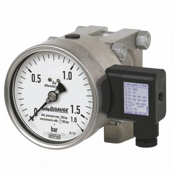 Model 732.14 yüksek kalite mekanik Fark basınçölçer içerisine entegre edilmiş elektronik WIKA transmitteri elektriksel sinyal iletimi avantajlarını yerel mekanik gösterge avantajları ile birleştirmektedir.