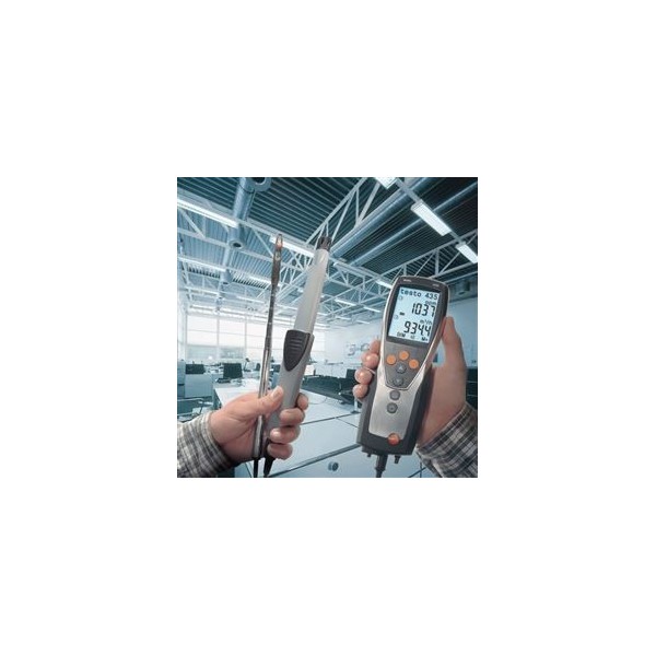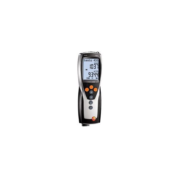 testo 435-3, klima, havalandırma ve iç hava kalitesi için dahili fark basınç ölçümü içeren kombine ölçüm cihazı, bataryası ve kalibrasyon protokolü ile birlikte