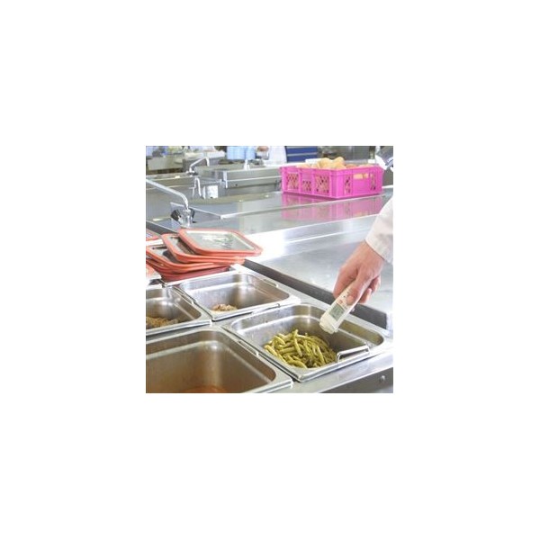 Gıda endüstrisi için hızlı ve doğru infrared termometre, temassız yüzey sıcaklığı ölçümü sayesinde ambalajlara zarar vermeden sıcaklık limit değerlerini kontrol etmenize yardımcı olur. Bu özellik sayesinde HACCP yönetmeliklerini kolayca yerine getirebilirsiniz.