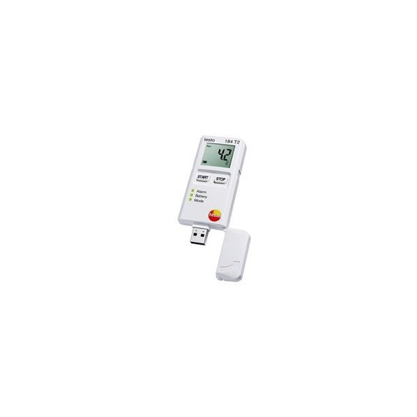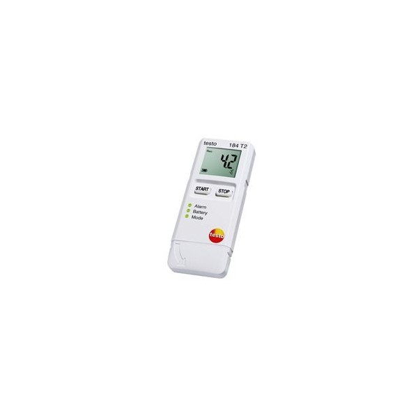 Teslimat kapsamı: Sıcaklık dataloggerı testo 184 T2, ISO kalibrasyon sertifikası, batarya ve dataloggerın kolayca takılabilmesi için 1 adet çift taraflı bant.